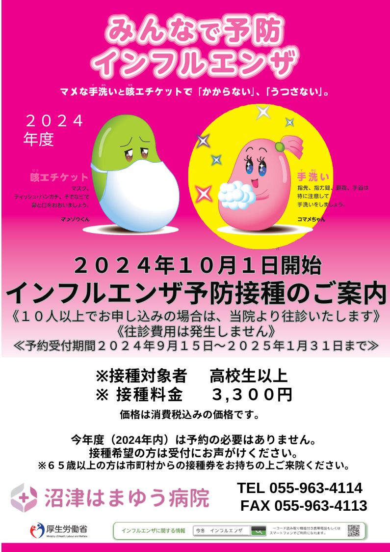 ※今年度(2024年内)は予約の必要はありません。接種希望の方は受付にお声がけください。
